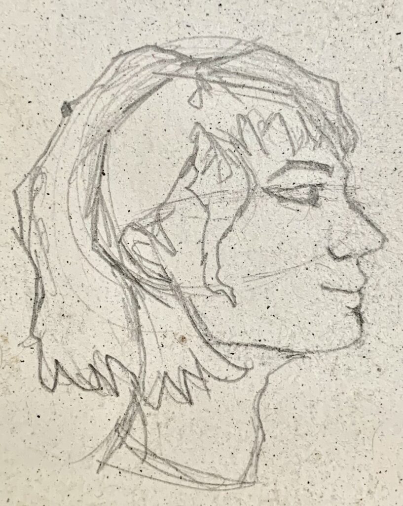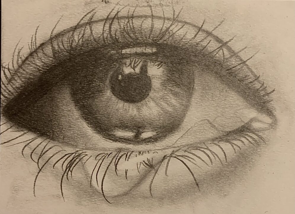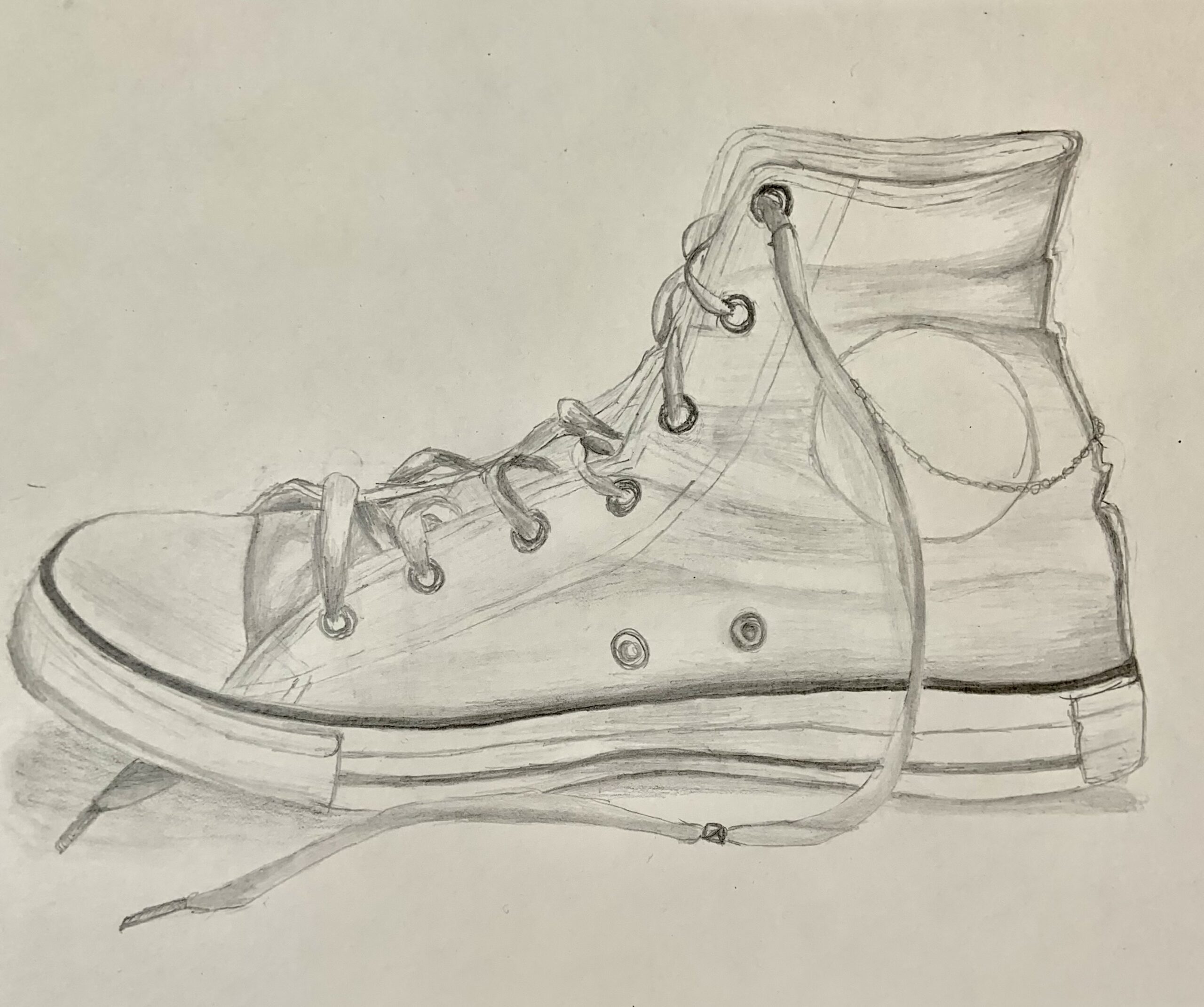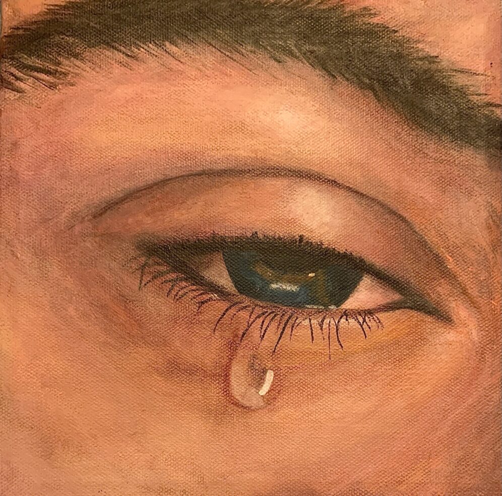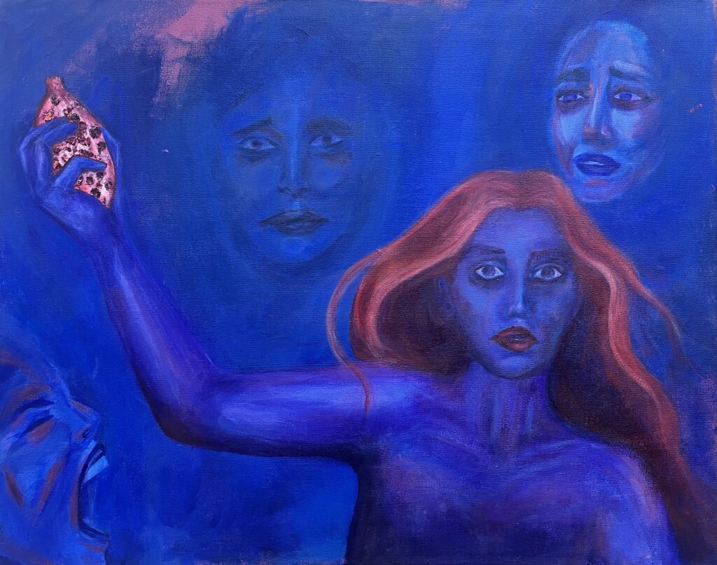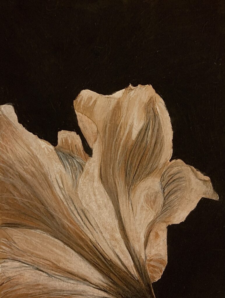 Once when at the airport, my family saw a man with a bloody apron, seemingly unnoticed. For her birthday, my mom requested a piece inspired by that experience. By using a vague background, no faces, and an unclear era, I was able to create a feeling of anonymity and strangeness.