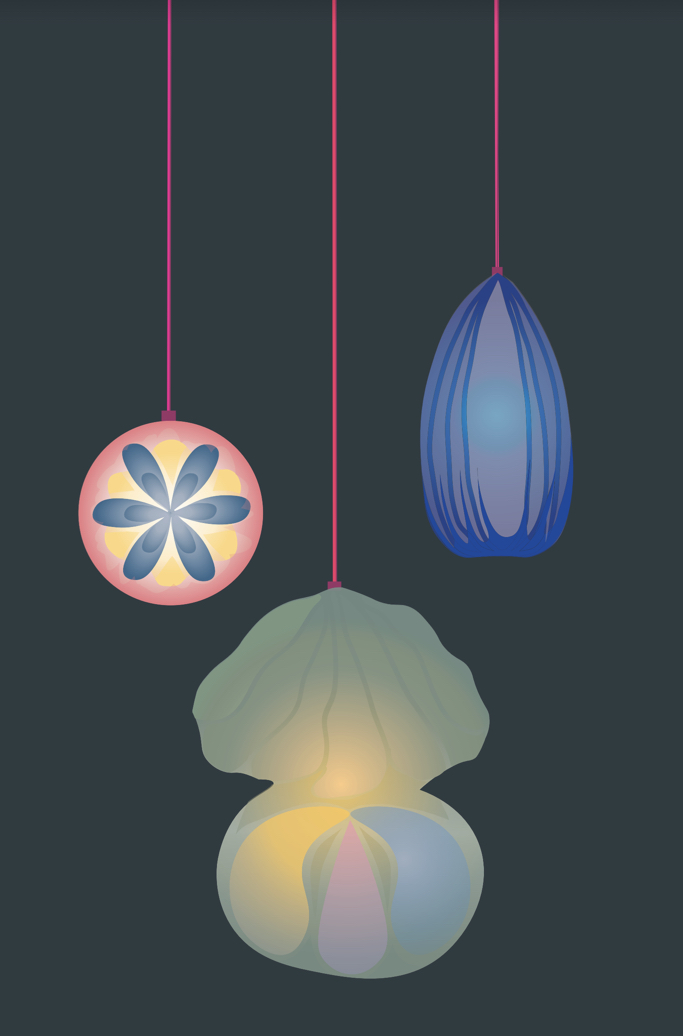The assignment was to create a light fixture with a theme, so I made three lanterns inspired by the art of Hilma af Klint.