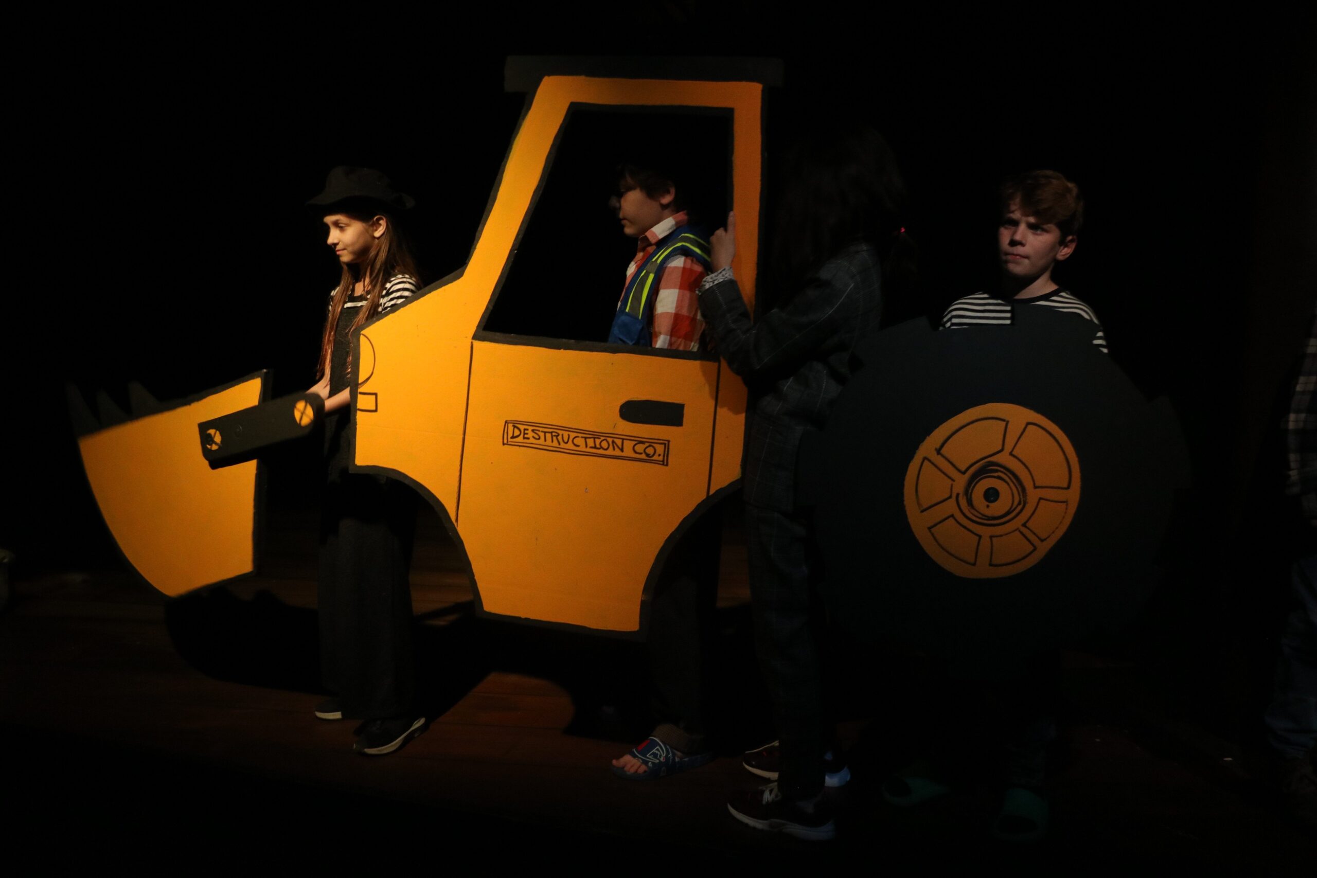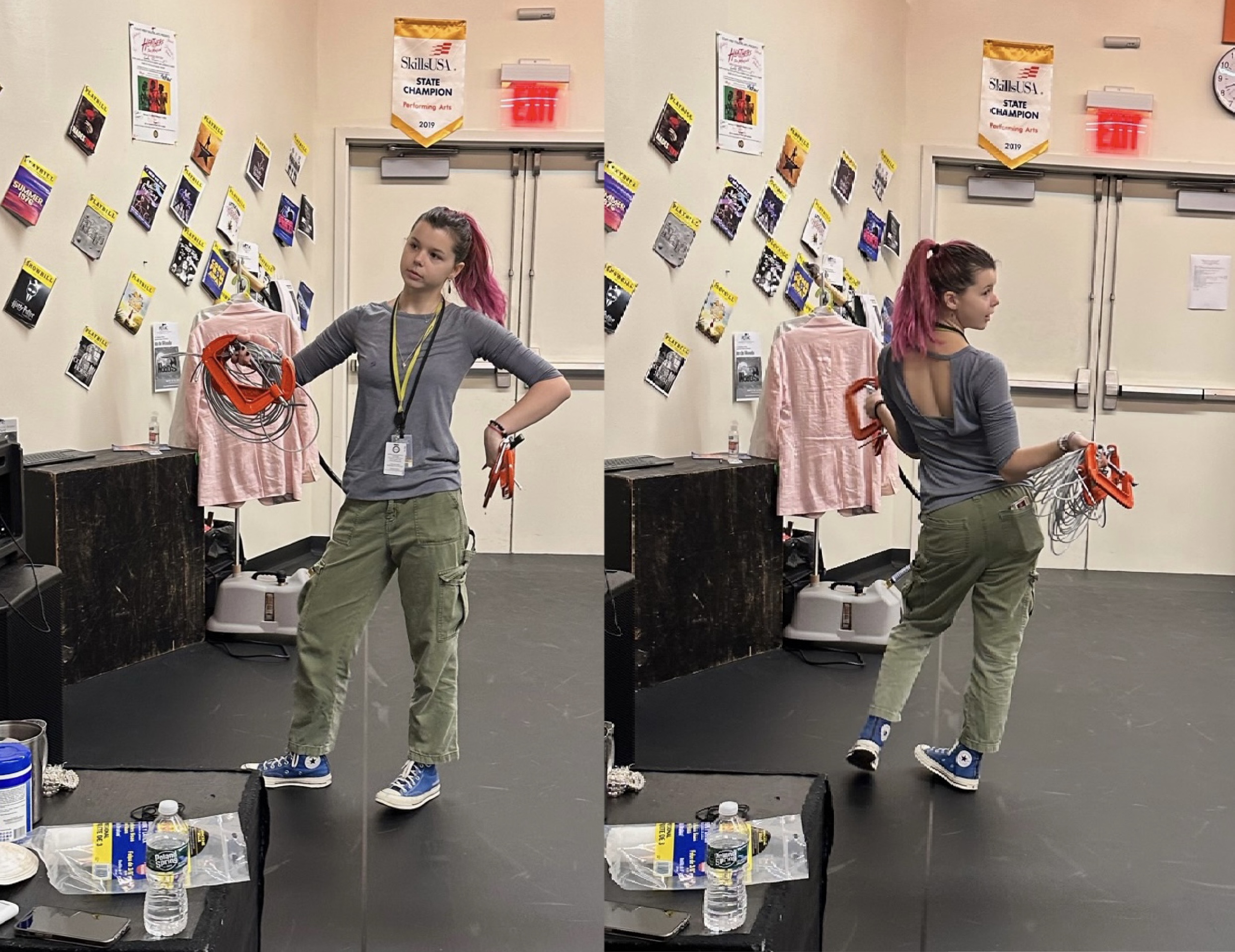 the principal played a sleepy mom with a robe, and this costume was hidden underneath for convenience this jumpsuit is the same as the janitor, so i added a vest to distinguish his character this bus driver outfit used the same base as the single dad costumecurtain call, with me and the rest of the crew in our costumes